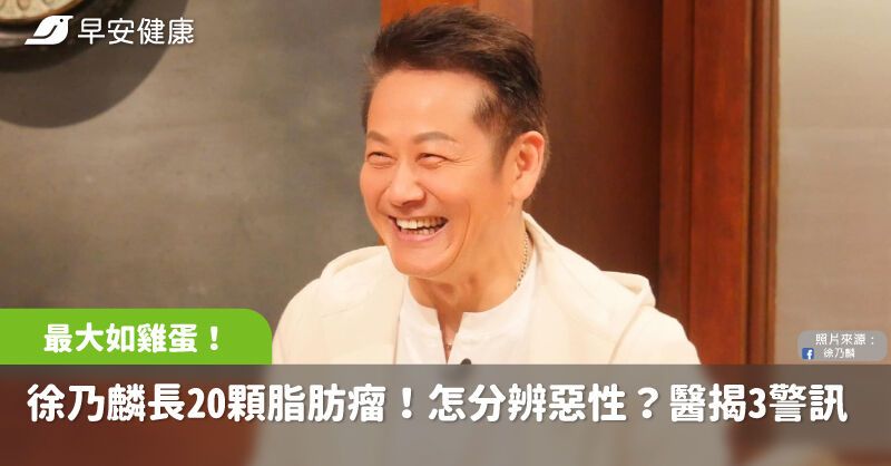 身上突然冒出一顆顆軟軟的小肉球、小腫塊,到底該不該切?會不會是癌症?長年主持《醫師好辣》的藝人徐乃麟也相當關心身體變化,日前在記者會自曝,全身長了超過20顆脂肪瘤,所幸都是良性的,不影響健康。不過醫師提醒,若脂肪瘤出現3大異常變化,就必須提高警覺,及早就醫。