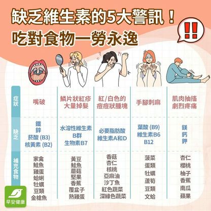 每一次嘴破、抽痛,你會不會老是搞不清楚究竟是感冒、火氣大、還是單純昨晚沒睡飽?種種微小到讓人不以為意的症狀,其實是身體缺乏各類「維生素」所發出的警訊!